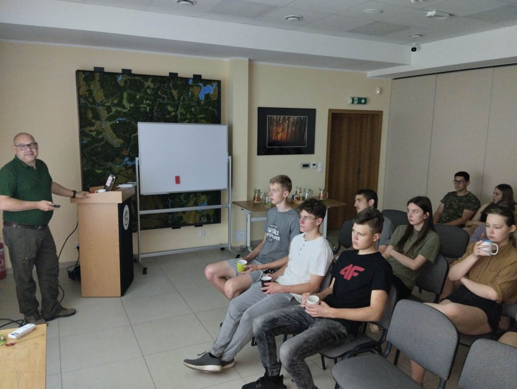 Kolejnym punktem było spotkanie z Dyrektorem Wdeckiego Parku Krajowego p. Danielem Siewertem, który podczas wykładu na temat Parku przybliżył nam jego walory przyrodnicze, opowiedział o rezerwatach przyrody znajdujących się na terenie WPK, omówił akcje związane z czynną ochroną przyrody prowadzone przez Park oraz przedstawił inicjatywy archeologiczne i historyczne dokonane na terenie Parku. Następnie klasa wyruszyła na trzygodzinny marsz na orientację, który okazał się trudnym wyzwaniem ze względu na ukształtowanie terenu i panujący tego dnia upał. Każdego wieczoru organizowaliśmy ogniska, na których klasa miała możliwość integracji oraz prowadziliśmy towarzyską grę fabularną symulującą walkę pomiędzy poinformowaną mniejszością i niepoinformowaną większością, dzięki czemu grupa rozwinęła umiejętności obserwacji i analizy zachowań, wyciągania wniosków, przekonywania, a także kontroli mowy ciała oraz innych sygnałów niewerbalnych.