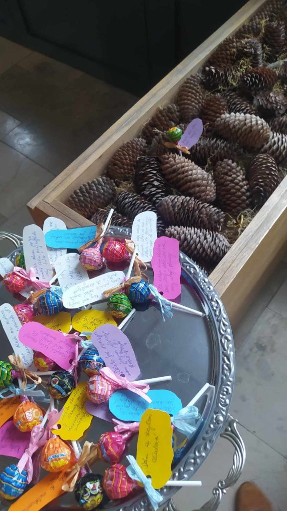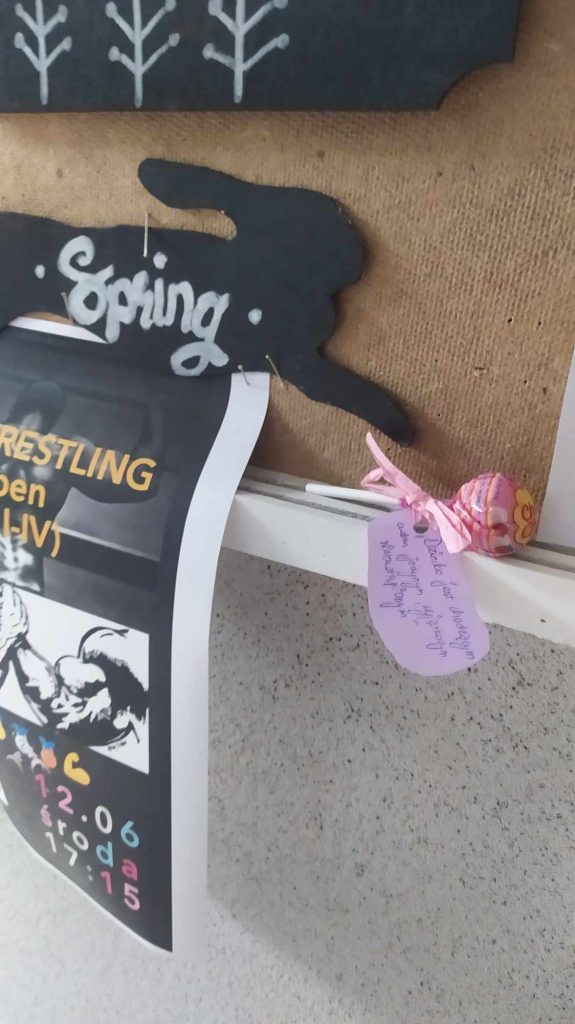 Po zakończonej zabawie na terenie internatu można było znaleźć jeszcze słodki upominek z różnymi cytatami