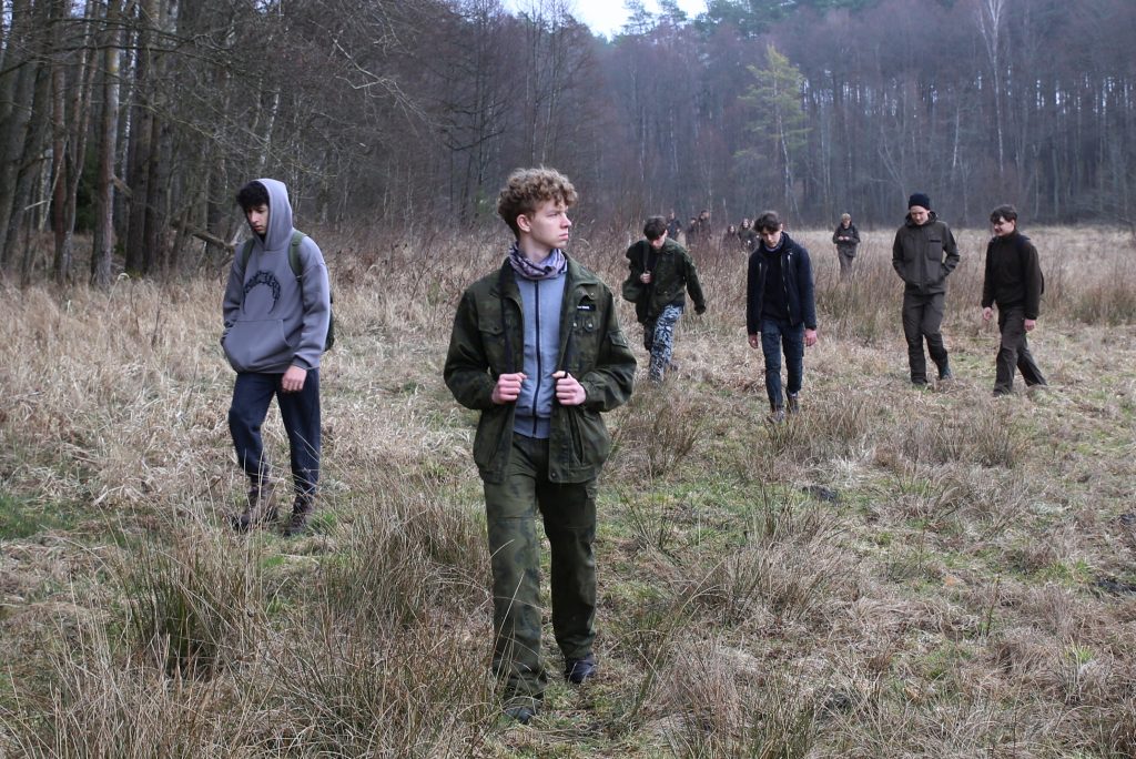 Pod opieką nauczycieli Roberta Nowakowskiego i Krzysztofa Ogłuszki oraz samego prelegenta – Rafała Borzyszkowskiego – uczniowie wyruszyli do lasu na terenową wyprawę edukacyjną pod hasłem „Wilczym tropem”.