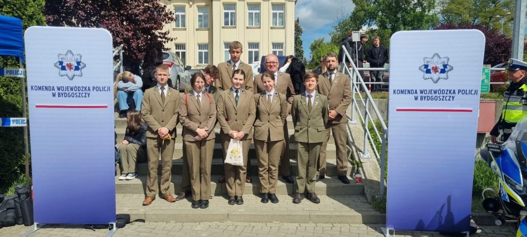 Dnia 9.05.2025 (piątek) grupa 7 uczniów z Koła Turystyczno-Krajoznawczego wraz z opiekunami na zaproszenie Pana Komendanta Wojewódzkiego Policji w Bydgoszczy insp. Jakuba Gorczyńskiego wybrała się na piknik „Fundusze Europejskie wspierają bezpieczeństwo – zobacz jak działa kujawsko-pomorska Policja” zorganizowany na terenie Oddziałów Prewencji Policji w Komendy Wojewódzkiej Policji Bydgoszczy. .