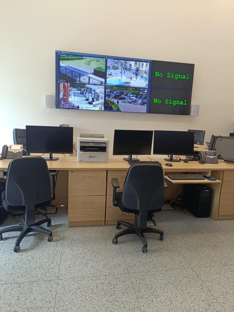 Podczas pobytu na pikniku przedstawiono nam i omówiono pracę z monitoringiem miejskim przydatnym do kontroli większych wydarzeń na terenie miasta oraz obsługę bezzałogowego statku powietrznego.