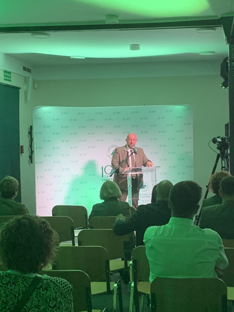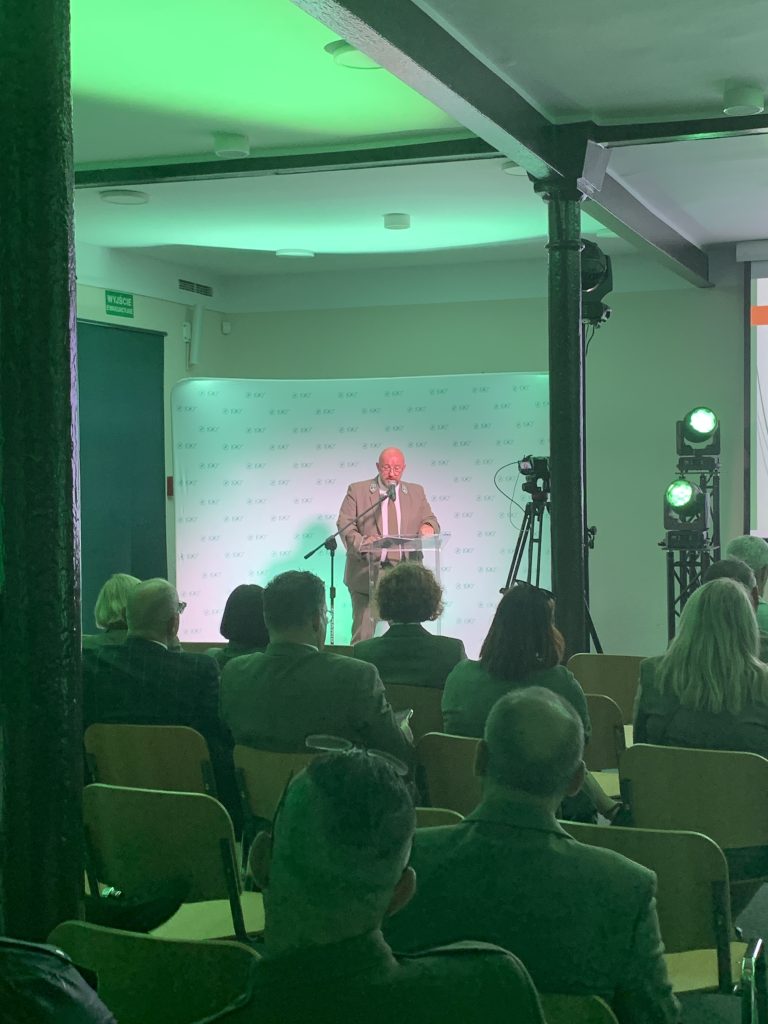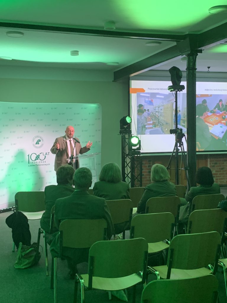 b)”Jesteśmy dla przyszłości”- Dyrektor naszej szkoły dr Piotr Marciniak przedstawił prezentację , której temat brzmiał : „Tradycja w połączeniu z nowoczesnością i modernizacją kształcenia leśnego”.