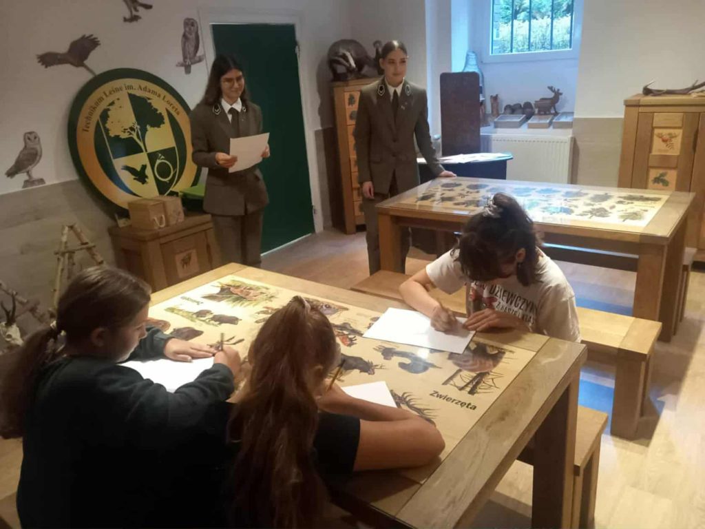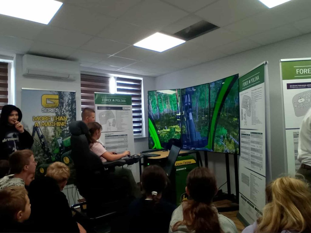 Podczas spotkania uczniowie mieli okazję zwiedzić teren Technikum Leśnego, poznać codzienną pracę przyszłych leśników oraz wziąć udział w zajęciach przyrodniczych przygotowanych przez naszych uczniów: Monikę Radosz , Annę Wysocką, Amelię Piesik, Gabrielę Stefańską, Antoniego Ziacha, Norberta Żołądkiewicza, Łukasza Łaskiego i Piotra Niklasa. Największym zainteresowaniem cieszyły się warsztaty obsługi harvestera.