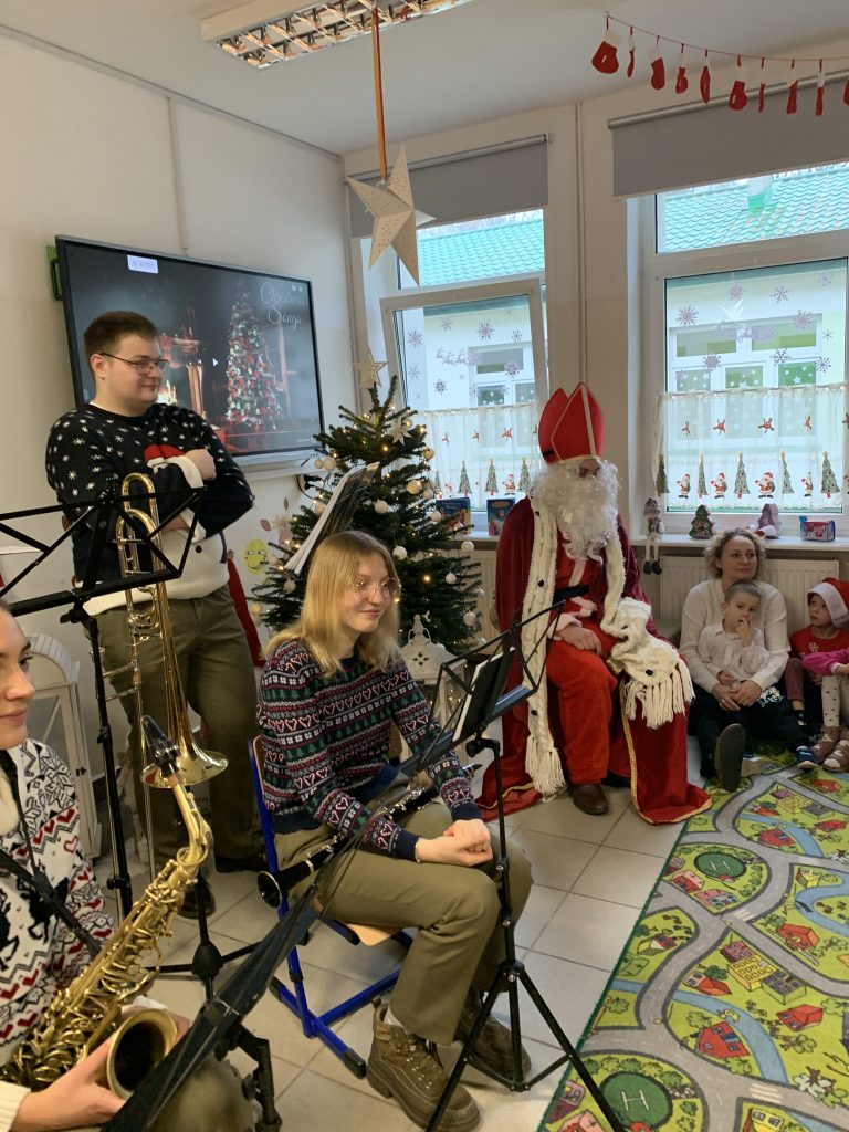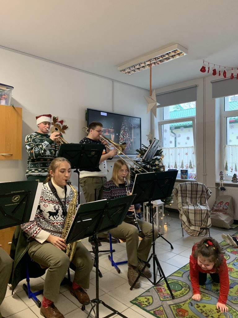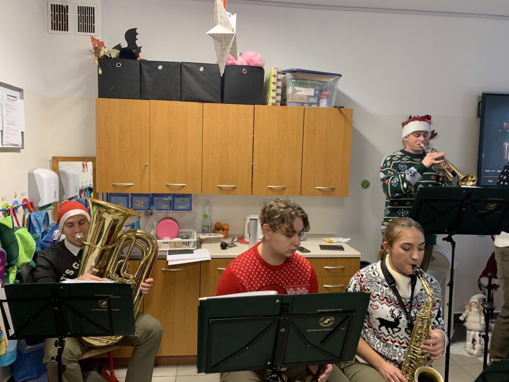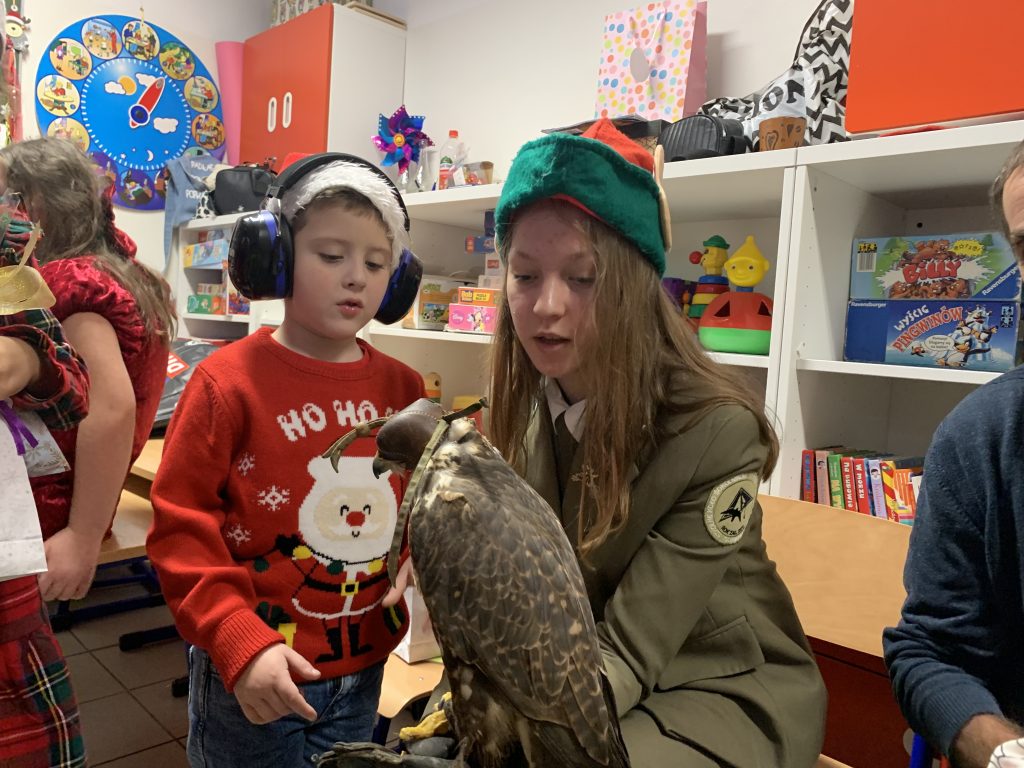 Nasza mikołajkowa ekipa  (Wiktoria Kapiszka, Dominika Gliszczyńska, Julian Dąbrowski, Mateusz Idzik, Hubert Bock, Michał Opaluch)miała ogromną przyjemność odwiedzić Specjalny Ośrodek Szkolno-Wychowawczy w Tucholi. Gościliśmy w przedszkolnych grupach Pszczółek, Biedronek, Żabek i Motylków , gdzie już od progu czekała na nas niezwykle ciepła i radosna atmosfera. Dzieci, pełne oczekiwania, przywitały nas zimową piosenką, którą zaśpiewały z wielkim zaangażowaniem. Chwilę później pojawił się długo wyczekiwany  Święty Mikołaj (Mateusz Idzik), witany głośnymi okrzykami i szerokimi uśmiechami. Z charakterystyczną dobrocią i spokojem rozdawał prezenty wszystkim maluchom.  Naszej mikołajkowej drużynie towarzyszył  również niezwykły gość – sokół Uriel (pod opieką Magdy Jóskowskiej), który wzbudził ogromne zainteresowanie dzieci. Wspólnie spędzony czas pełen był ciepła, śmiechu i wzruszeń. Jak powiedział sam Mikołaj:  „Najpiękniejszym prezentem jest widzieć radość w oczach dziecka, gdy ofiarowuje się mu choćby mały dar.” To spotkanie na długo pozostanie w naszych sercach.