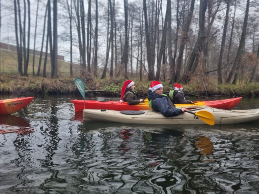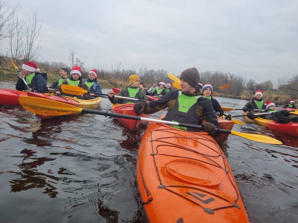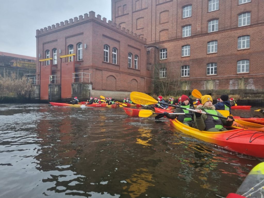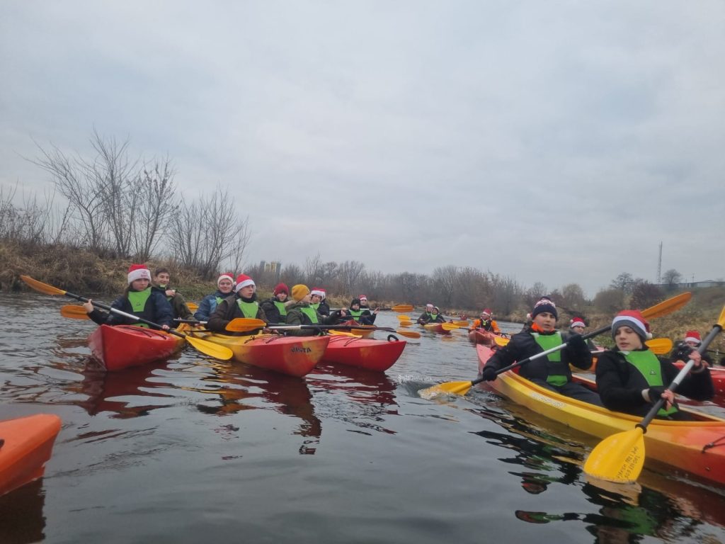 Dnia 7 grudnia członkowie Koła Turystyczno-Krajoznawczego wzięli udział w III Mikołajkowym Spływie Kajakowym, który tym razem odbył się na rzece Wdzie. Spływ zaczął się przy elektrowni wodnej w Kozłowie, a kończył pod zamkiem krzyżackim w Świeciu. Trasa, którą przepłynęliśmy wynosiła 8 kilometrów. Zajęło nam to około 3 godziny. Tradycyjnie już na spływie tym płynęli razem z sobą: „Mikołaje”, „renifery” a nawet „Grinch” i inne „stwory”. Uczestniczy spływu zadbali o odpowiednie na ten spływ „wdzianka” orz o odpowiednie udekorowanie swoich kajaków. Podczas spływu na swojej drodze napotkaliśmy 3 mosty oraz 1 „przenoskę”. Nurt był spokojny, więc wszyscy bezpiecznie i bez przykrych niespodzianek dopłynęliśmy do celu. W trakcie ostatniego odcinka drogi mięliśmy przyjemność podziwiać z perspektywy tej rzeki „najlepszy widok na Świecie ”. Dotarwszy do celu naszej podróży, którym była przystań wodna przy zabytkowym zamku krzyżackim w Świeciu, wspólnie zjedliśmy wyśmienity posiłek oraz wygrzaliśmy się przy ogniskach. Niektórzy skorzystali również z możliwości zwiedzania zamku z przewodnikiem oraz obejrzenia panoramy miasta z wieży. Szczęśliwi i pełni nowych doświadczeń wróciliśmy do Tucholi. Dla wielu była to niezapomniana przygoda i wielu ją powtórzy.