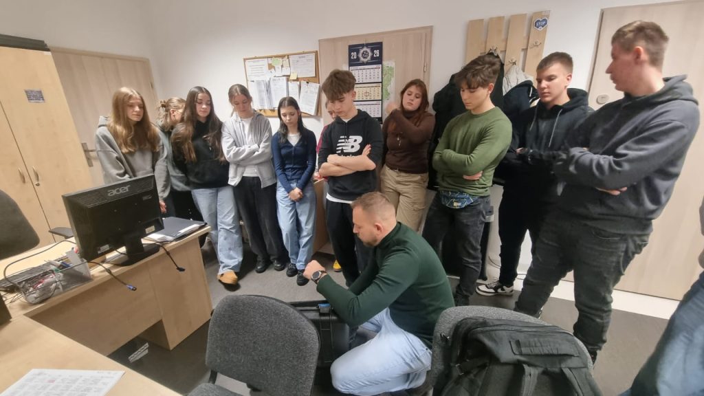 W dniu 15 stycznia 2026 roku członkowie koła turystyczno-krajobrawego wzieli w wizycie w Komedzie Powiatowej Policji w Tucholi. Po budynku oprowadzał nas aspirant Tomasz Gac. Podczas spotkania obejrzeliśmy pomieszczenia placówki takie jak: areszt, niebieski pokój, siłownie i wiele innych. Poznaliśmy także funkcje poszczególnych przedmiotów i sekcji.