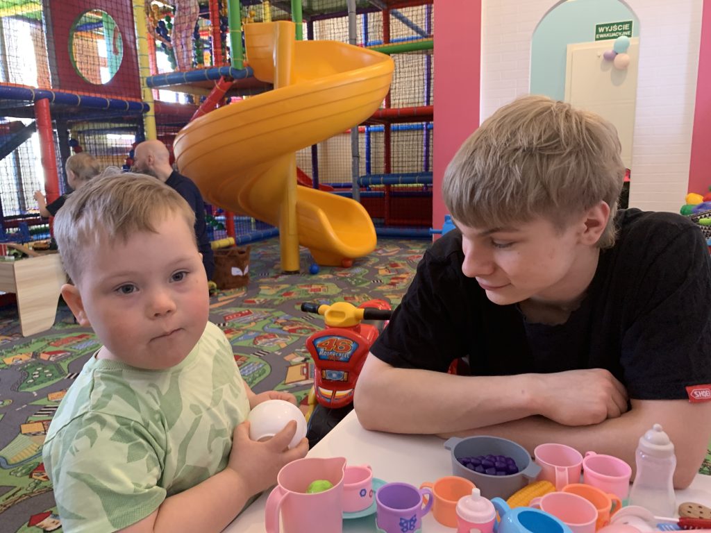 Z okazji Światowego Dnia Zespołu Downa uczniowie naszej szkoły: Amelia Dam, Aleksandra Zacharenko, Bartosz Pilich oraz Patryk Janik wzięli udział w wyjątkowym spotkaniu integracyjnym zorganizowanym przez Stowarzyszenie Do Potęgi 21. Wydarzenie było okazją do wspólnej zabawy, integracji oraz pokazania, jak ważne są akceptacja, życzliwość i wzajemne wsparcie. Na uczestników czekało wiele atrakcji: wesołe wyścigi czy wspólne zabawy ruchowe. Ogromną radość sprawiły wszystkim „bitwy” w basenie wypełnionym kolorowymi piłeczkami, które wywołały mnóstwo śmiechu i pozytywnych emocji. Uczniowie mogli także rozwijać swoją kreatywność, budując niezwykłe konstrukcje z klocków. Dużym zainteresowaniem cieszyła się również mini kuchenka, w której dzieci serwowały nam dania „na niby”.