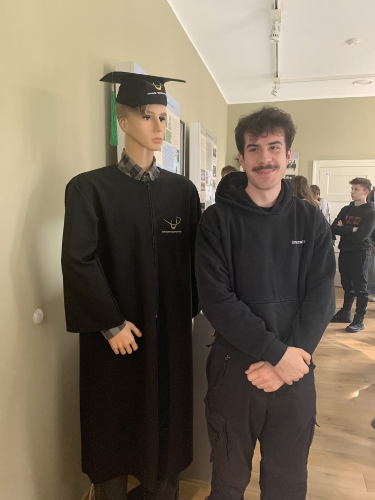 Uczniowie klas czwartych naszej szkoły mieli okazję uczestniczyć w niezwykle inspirującej wycieczce na Uniwersytet Przyrodniczy w Poznaniu. Już na samym początku naszej wizyty zostaliśmy serdecznie powitani przez zespół sygnalistów „Venator”, których wyjątkowy koncert wprowadził wszystkich w atmosferę tradycji leśnych i akademickich. Następnie przywitał nas wicedziekan wydziału prof. Witold Grzywiński , który opowiedział o uczelni i możliwościach studiowania na kierunkach związanych z przyrodą i leśnictwem. Podczas całej wizyty opiekę nad nami sprawowali dr Mariusz Bembenek oraz nasz starszy kolega – student II roku, Miłosz Przybysz, który z dużym zaangażowaniem dzielił się swoimi doświadczeniami ze studiów. O historii studiów leśnych w ciekawy sposób opowiedział nam prof. Jarosław Szaban, przybliżając tradycje i znaczenie tego kierunku dla ochrony przyrody i gospodarki leśnej. Kolejnym punktem programu było zwiedzanie ogrodu dendrologicznego z p. Joanna Jaskulską, gdzie mogliśmy zobaczyć wiele gatunków drzew i krzewów z różnych części świata. Była to doskonała okazja do poznania różnorodności roślin oraz znaczenia badań nad nimi. Następnie odwiedziliśmy akademik „Przylesie”, gdzie czekało na nas wiele informacji o życiu studenckim. Nie zabrakło również miłej niespodzianki – prawdziwej uczty kulinarnej! Miłosz wraz z koleżankami i kolegami przygotował dla nas przepyszną zupę meksykańską ,ciasteczka oraz kawę i herbatę. Pełni naukowych wrażeń udaliśmy się później do palmiarni . Przewodnicy zapoznali nas tam z roślinnością różnych kontynentów. Co więcej, mogliśmy spróbować niezwykłych smaków – degustowaliśmy między innymi cukier palmowy, kakao oraz goździki. Na zakończenie naszej wizyty udaliśmy się na wystawę poświęconą słynnemu statkowi RMS Titanic i wydarzeniom związanym z zatonięciem Titanica. Każdy z nas otrzymał bilet jednego z pasażerów tego rejsu i na końcu mógł sprawdzić, czy „przeżył” katastrofę. Szczególne wrażenie zrobiła na nas sala immersyjna, która pozwoliła poczuć atmosferę prawdziwego rejsu. Pełni nowych doświadczeń, wiedzy i niezapomnianych wspomnień wróciliśmy do Tucholi. Była to wycieczka, która na długo pozostanie w naszej pamięci i być może dla niektórych stanie się inspiracją do wyboru przyszłej drogi zawodowej. Szczególne podziękowania dla p.Lucyny Chylewskiej i Miłosza Przybysza za zorganizowanie tej wspaniałej wycieczki.